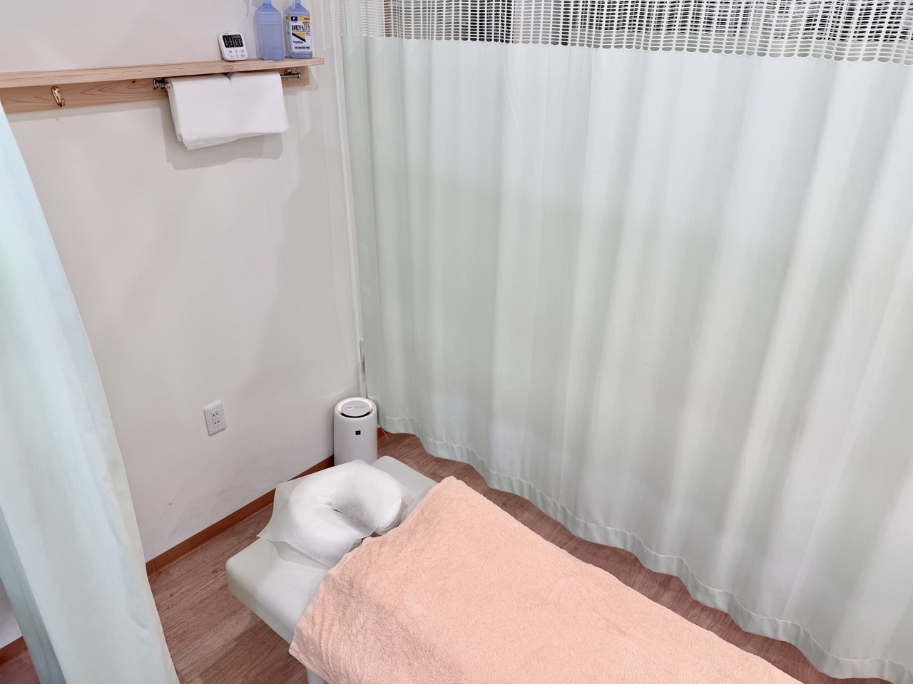 空気循環を保つため、各ベッドごとに清浄機を設置し、常にきれいな空気環境で施術を受けていただけます。